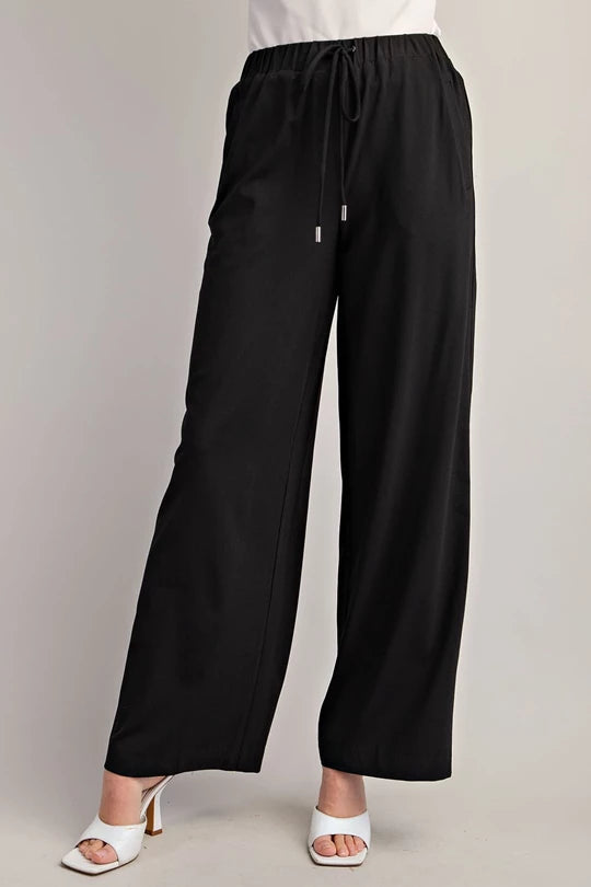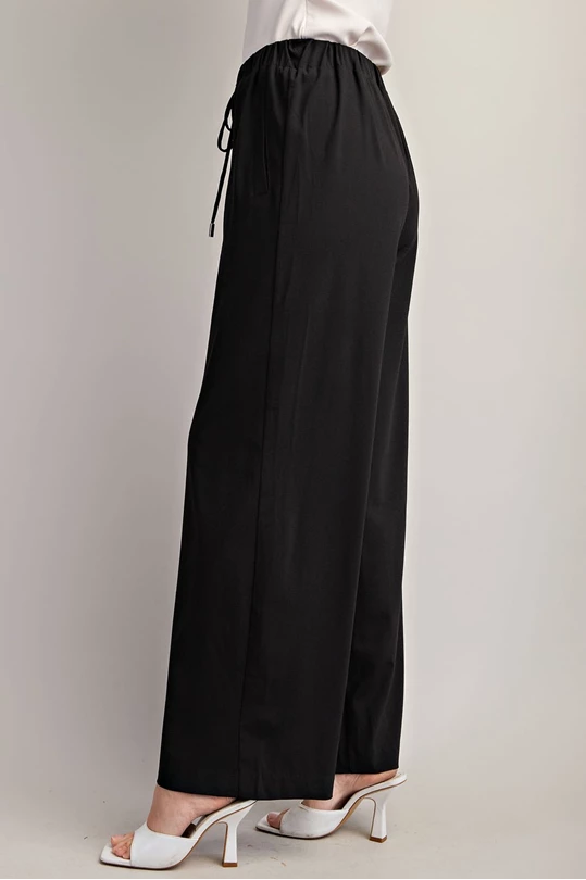 Versatile and stylish, these Elastic Waist Wide Leg Pants are perfect for transitioning from work to a night out. With a comfortable elastic waistband and wide leg design, these pants provide both style and functionality. Elevate your wardrobe with these must-have pants.