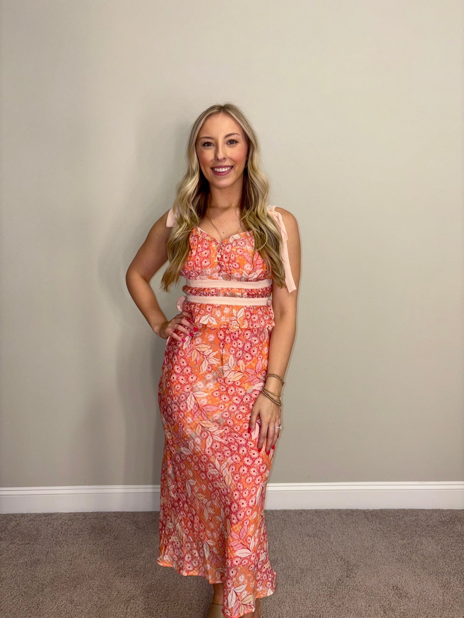 This versatile Floral Top and Midi Skirt Set is the perfect outfit for any event, including weddings, showers, parties, and even vacation. Stay stylish and comfortable in this must-have set that will make you the perfect wedding guest or fashion-forward vacationer.