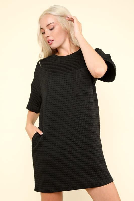 This Quilted Basic Shift Dress is the ultimate combination of cute, simple, and comfy. Whether you're dressing it up or down, this dress will keep you feeling stylish and comfortable all day long. Stay effortlessly chic with this must-have wardrobe staple.