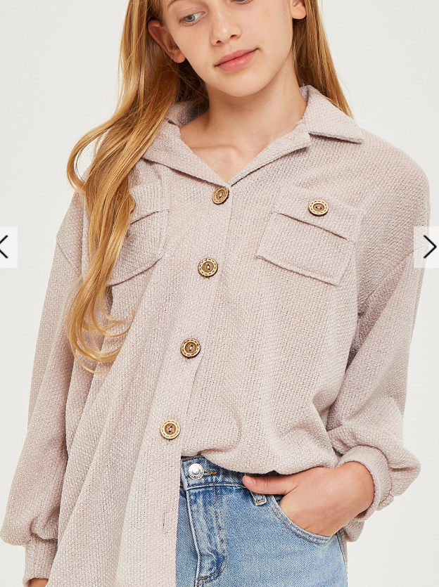 This Solid Chest Pocket Shacket is perfect for tweens looking for a cute and comfy addition to their wardrobe. Featuring a solid color and chest pocket, this item is a great option for any youngster.