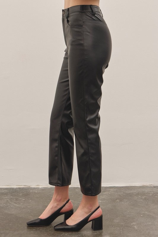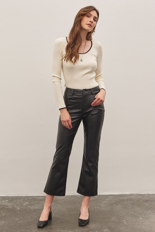 Slip into these Stretchy Leather Flare Crop Pants for a playful spin on your wardrobe. The flashy design lends itself to dressing up or down, providing endless opportunities to show off your unique style. Perfect for added touch to any outfit!